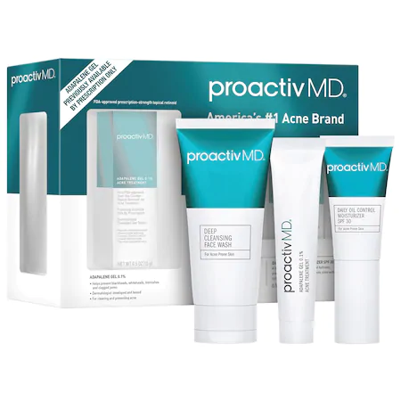 The ProactivMD 3-Piece system is Proactivs most advanced system yet using prescription-strength retinoidwithout the need for a prescription along with an essential cleanser and moisturizer duo. The Three Elements 1 - Deep Cleansing Face Wash. This system features our renowned prescription-strength retinoid no Rx required. Paired with a soothing cleanser and gentle hydrating moisturizer. Using the system is incredibly easy. Step 3 can be used throughout the day and step 4 is only applied once a day. Our unique Smart Target technology benzoyl peroxide dives directly into pores to kill acne causing bacteria while minimizing dryness and irritation. Proactiv Solution Teen Kit. Adapalene Gel is tough on stubborn acne by attacking breakouts at the cellular level.